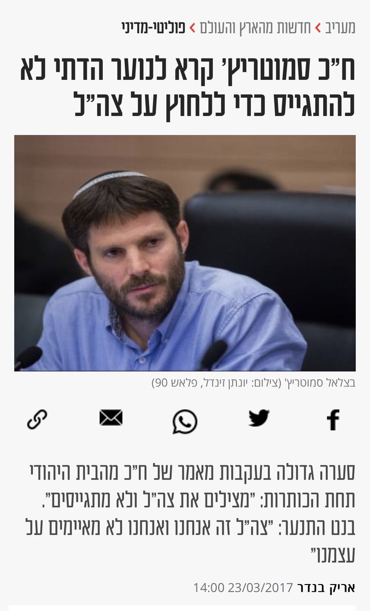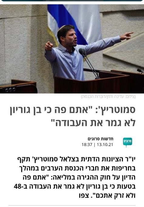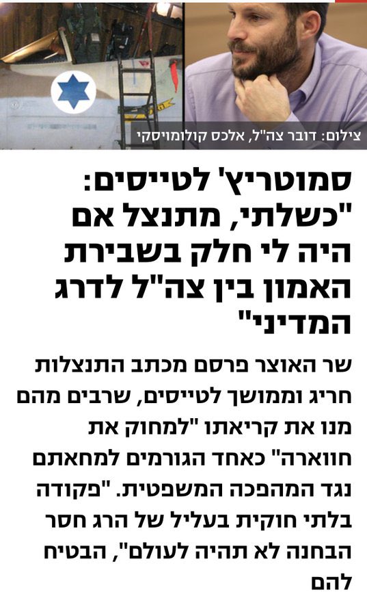 Above you will find Betzael erase Hawara Smotrich israeli sec. Of treasury. The one that incited to take down a whole village in the occupied territories. Now that the world media, the USA and Israeli public seen his true racist colors he is trying to swarm out of his racist>>