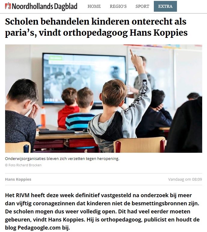 Twee pagina's desastreuze gevolgen schoolsluitingen. Ook: NL 🇳🇱