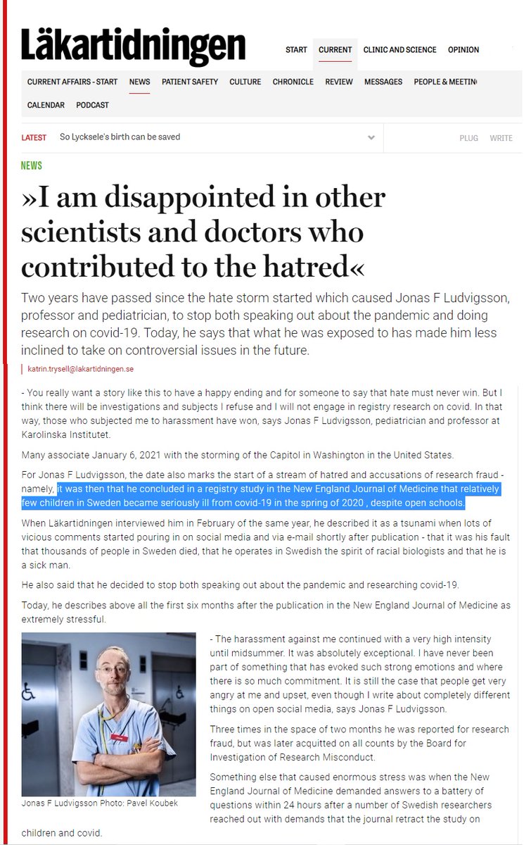 The reassuring findings from Sweden 🇸🇪 were published on 6/1/2021. "It is very gratifying that serious covid-19, defined here as needing treatment in an intensive care unit, is so rare among children despite schools being open during the pandemic"