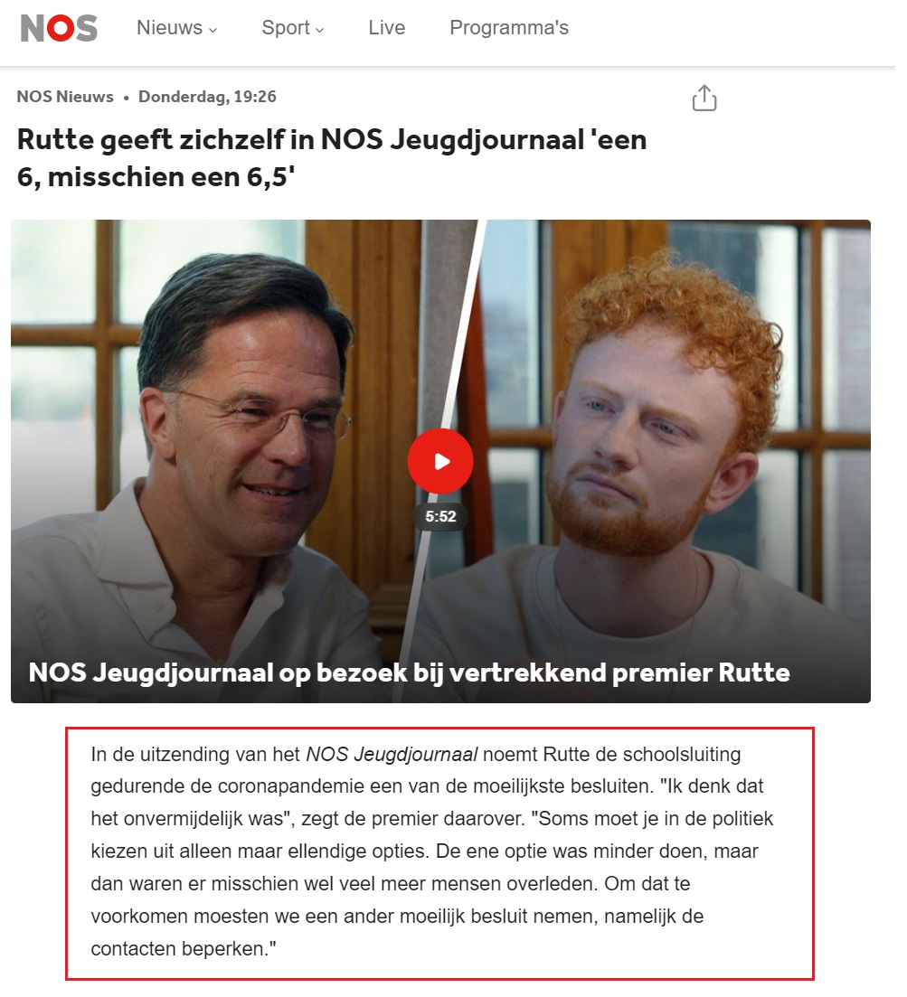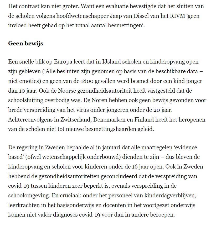 NB: Al in juni 2020 bevestigde een evaluatie dat het sluiten van de scholen volgens Jaap van Dissel van het RIVM ‘geen invloed heeft gehad op het totaal aantal besmettingen‘.