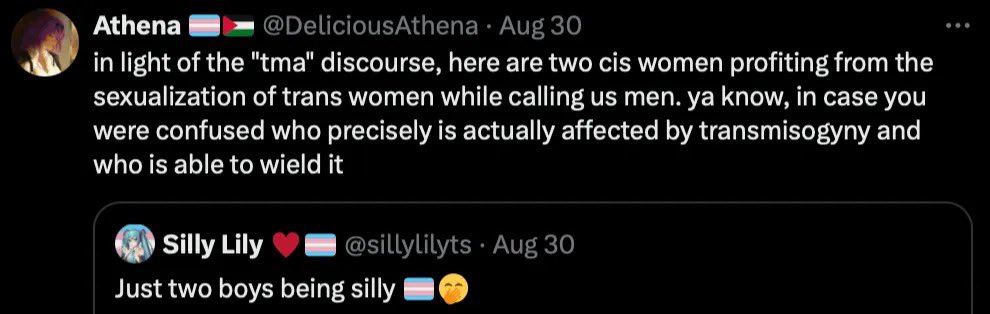 Athena commented that he thought women pretending to be men pretending to be women is ‘transmisogyny’ (a made up term for when someone is ‘misogynistic’ towards men who think they’re women).
