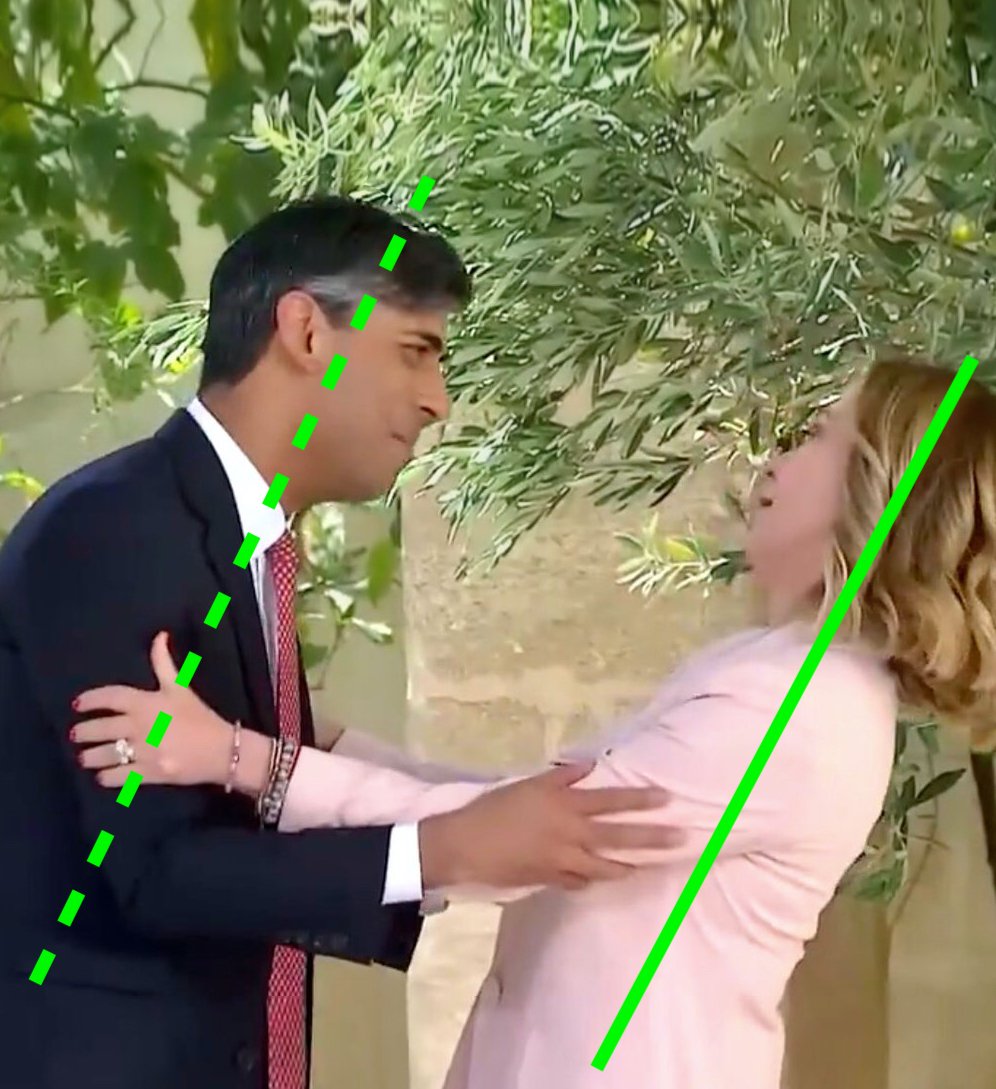 This leaning back is her body’s quiet way of saying, “You’re too close” or “I’m not fully comfortable here.”