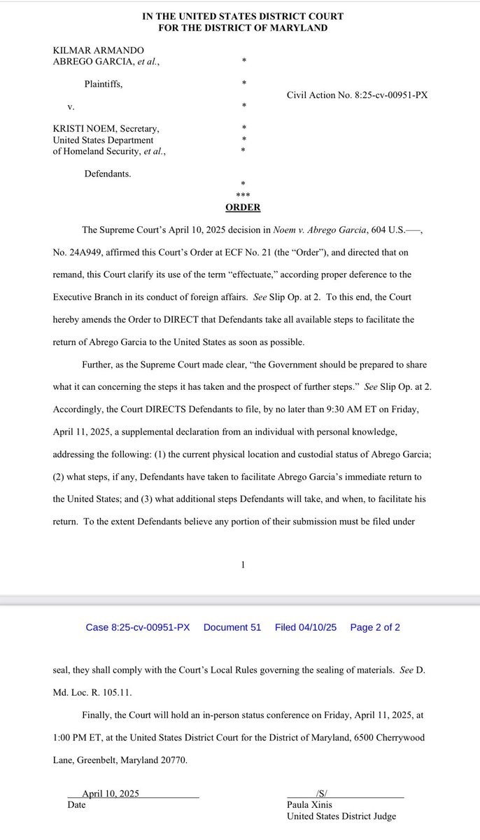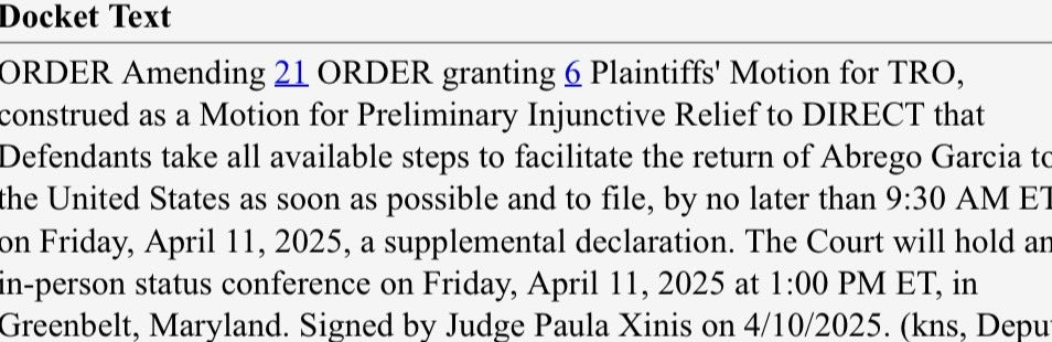 There is an in-person status conference at 1pm this afternoon in Greenbelt.