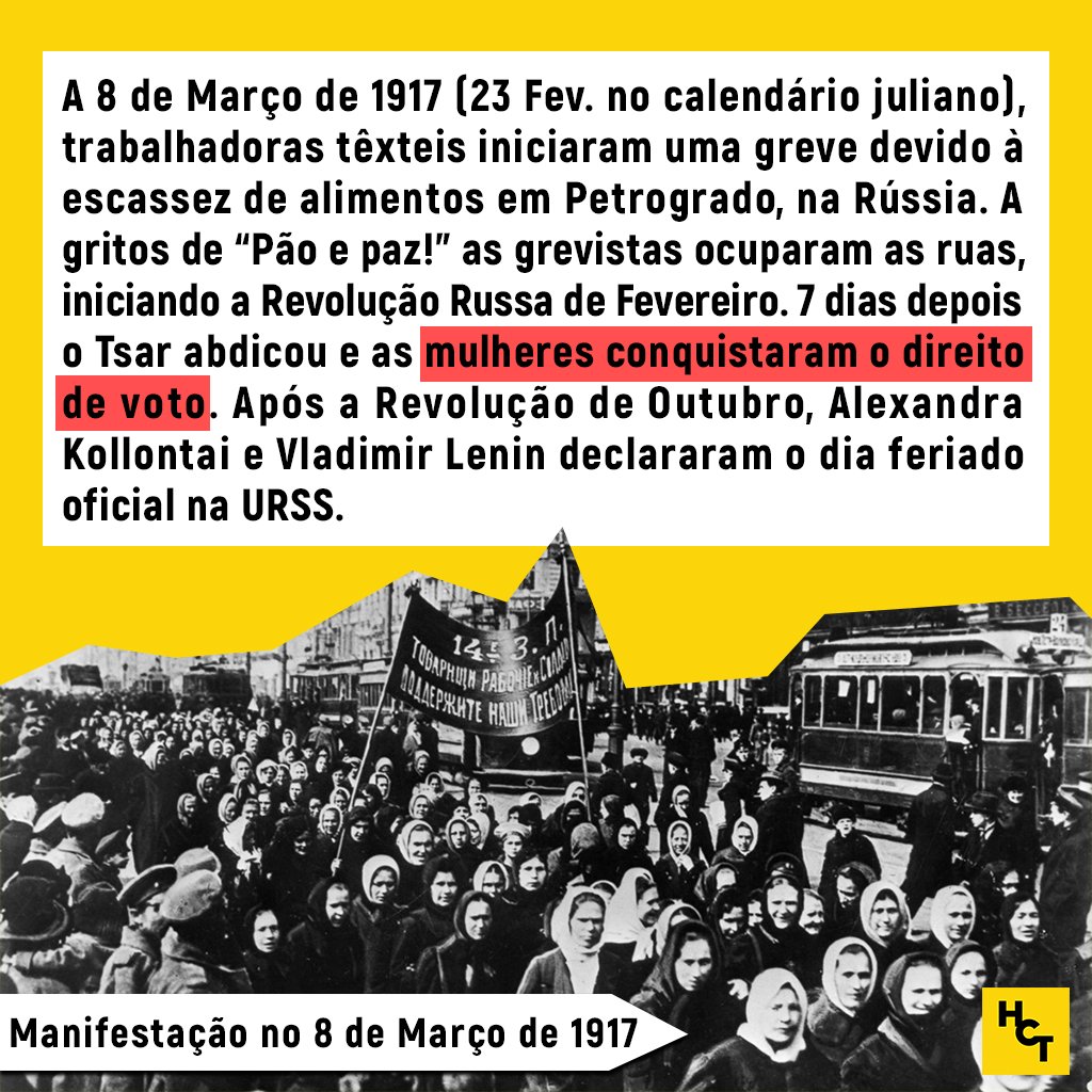 Neste dia celebra-se o Dia Internacional da Mulher. A origem histórica do Dia da Mulher [Trabalhadora] está ligada às lutas das mulheres por melhores condições laborais, sociais e para alargar o espectro dos seus direitos, que se tornaram mais notórias nos séc. XIX e XX. 1/7 ⬇️ 2/7 A decisão de celebração anual do dia surgiu de diversos grupos e contextos de esquerda radical, para inserir a mulher na luta por uma sociedade justa, e para honrar o papel que teve nas lutas emancipatórias, que foi constantemente negligenciado.