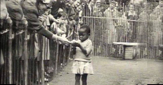 1/4 Neste dia, a 17 de abril de 1958, a Bélgica abriu a Feira Mundial, que incluía um 'zoológico humano' exibindo homens, mulheres e crianças negras nas suas 'condições nativas' encontradas no Congo, então uma colónia belga. 2/4 As pessoas usadas foram maltratadas e insultadas por espectadores brancos, que jogaram dinheiro e bananas por cima da cerca de bambu para tentar provocar uma reação.