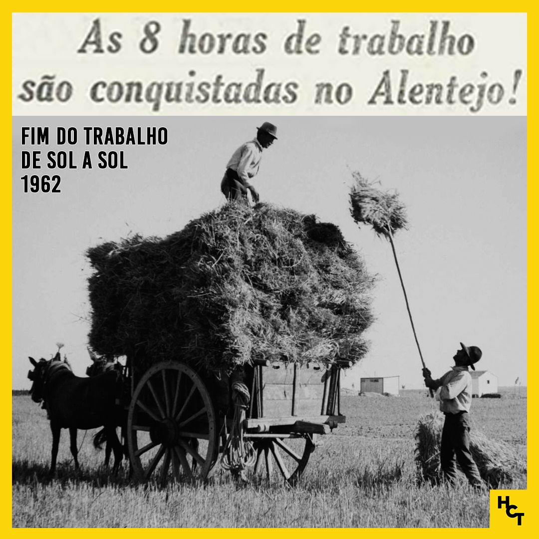 1/9 Neste dia, 30 de abril de 1962, inicia-se uma série de greves e protestos que poria fim ao trabalho de sol a sol com a conquista das 8 horas de trabalho no Alentejo, em Portugal, na qual participaram mais de 200 mil pessoas, mesmo com a forte repressão da ditadura portuguesa. 2/9 Irromperam-se greves e manifestações de camponeses por td o Alentejo, Margem Sul e centro de Portugal, mesmo nas aldeias mais pequenas e isoladas, com total adesão em muitas delas, organizadas em boa parte por militantes clandestinos do PCP e lideradas por António Gervásio +