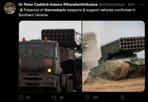 Bekannt als Putins Höllensonne oder Putins Pinnochio ist der russische Mehrfachraketenwerfer TOS-1.
