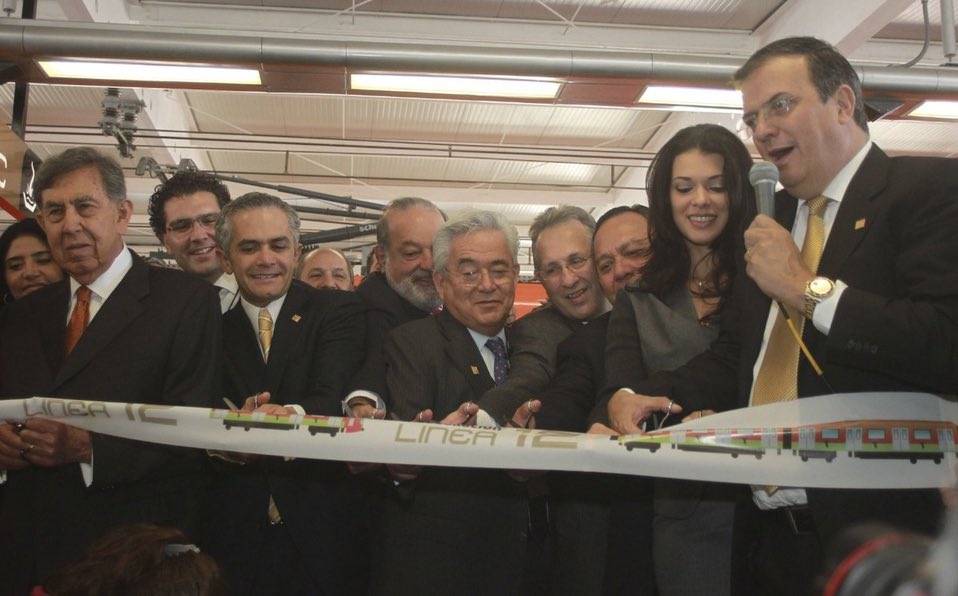 La #Linea12 era el legado de los gobiernos de izquierda de la CDMX, de candidatos promovidos por @PRDMexico@MovCiudadanoMX y @PTnacionalMX, consolidados ahora en @PartidoMorenaMx y aliados. Este era su emblema y este es su legado. Foto de @AristeguiOnline