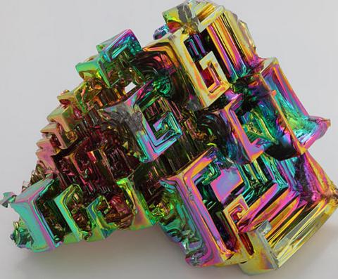 Empezamos con el Bismuto "fake" (Izquierda) que som cristales formados sintéticos en laboratorio vs Bismuto real natural y mineral (Derecha). A la izquierda tu y a la derecha el resto de tu familia (? 😂