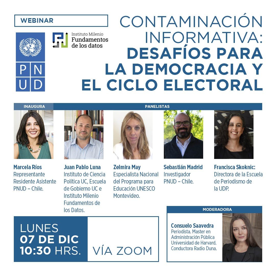 Marcela Ríos, represente de @PNUDChile comenta ahora que Chile es un país donde puede ocurrir una difusión más amplia de fenómenos asociados con la desinformación y malinformación.