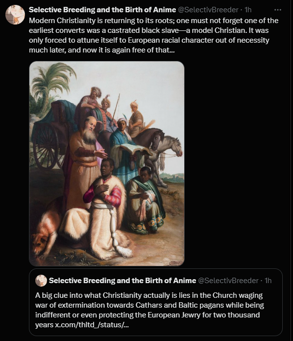 https://twitter.com/EMichaelJones1/status/2016321439893172325Scripture is to be read as a template for history, Israel an eternal form which through Christ any nation can become through faith. God will grant you your lebensraum, slaves and the power to slay all enemies. Just beware how Israel grew evil & was destroyed.