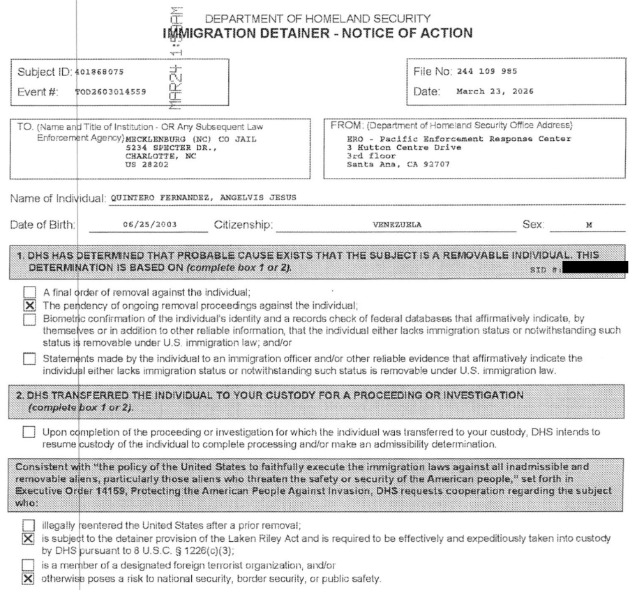 1. Mecklenburg County, NC: Man on detainer arrested for murder after double shooting https://x.com/ImmigrantCrimes/status/1968400248721617231