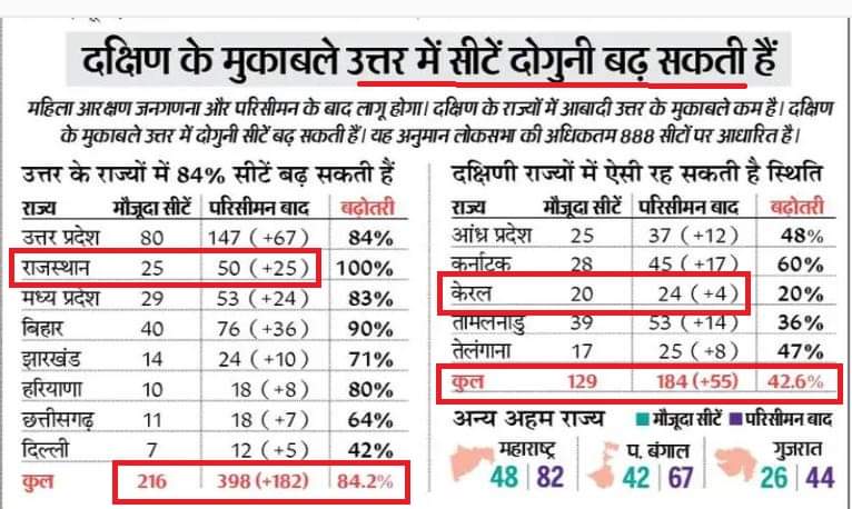 जैसा कि सभी जानते हैं, किसी संसद सीट का निर्धारण उस इलाके की जनसँख्या और क्षेत्रफल के आधार पर किया जाता है... जनसँख्या बढ़ेगी, तो सीटें भी बढेंगी... पोस्ट में दिए चित्र के अनुसार पिछले चालीस वर्ष में उत्तर भारत की जनसँख्या बहुत तेजी से बढ़ी है,