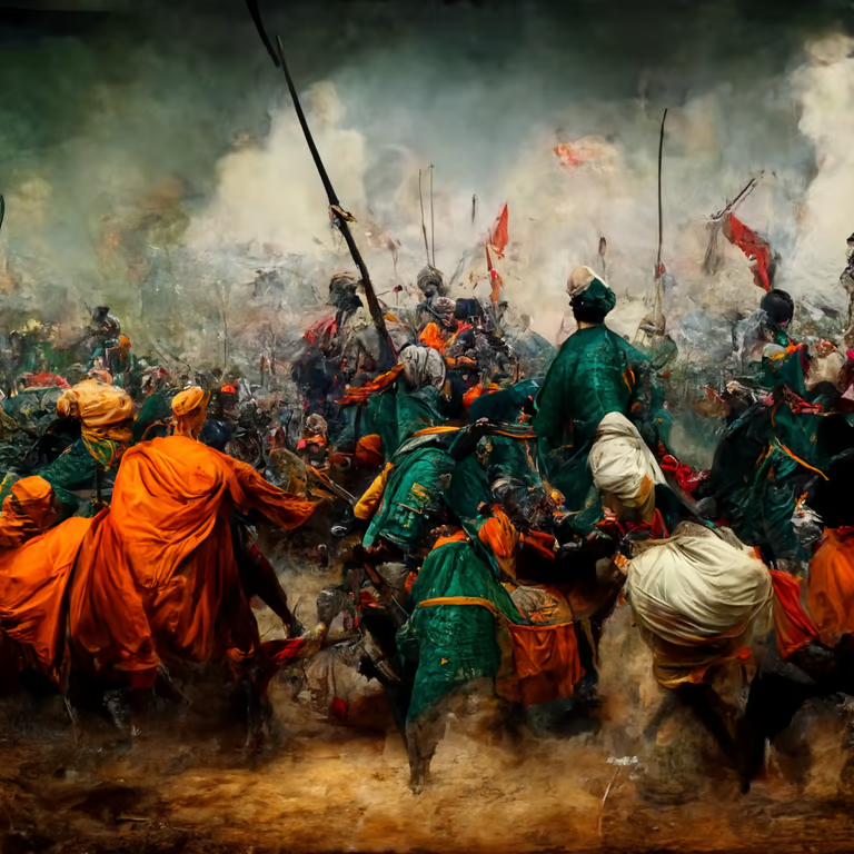 The Mughals are seen warring the Lodhis in the 1st Battle of Panipat, where we see Babur being almost killed by the Lodhi forces! Ibrāhīm Lodhi was in his mid-40s, but is instead depicted as a 60+ man with a long white beard and heavy voice (out of old age).