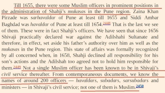 First of, there's no proper data to claim Chhatrapati Shivaji's forces had that many Muslims (claims ranging from dozens of officers to 1/3rd of the military force being Muslim!)
