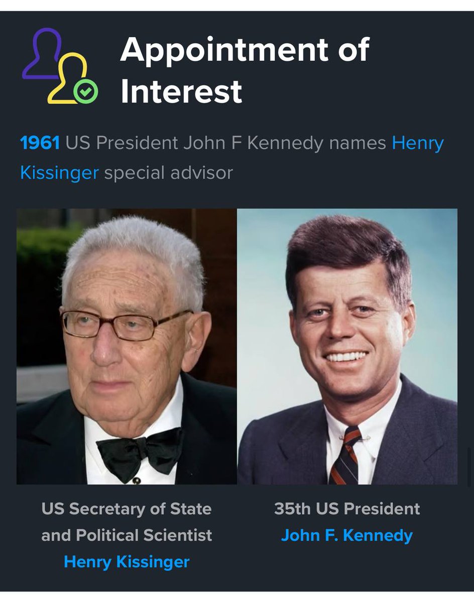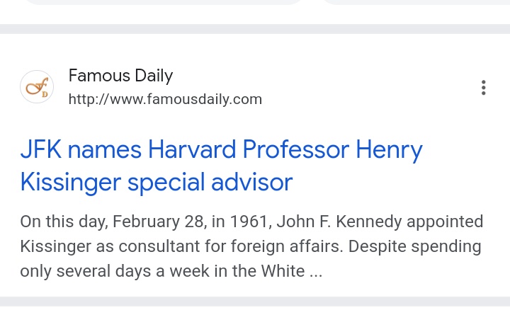 JFK appointed Henry Kissinger special advisor 2/28/1961.