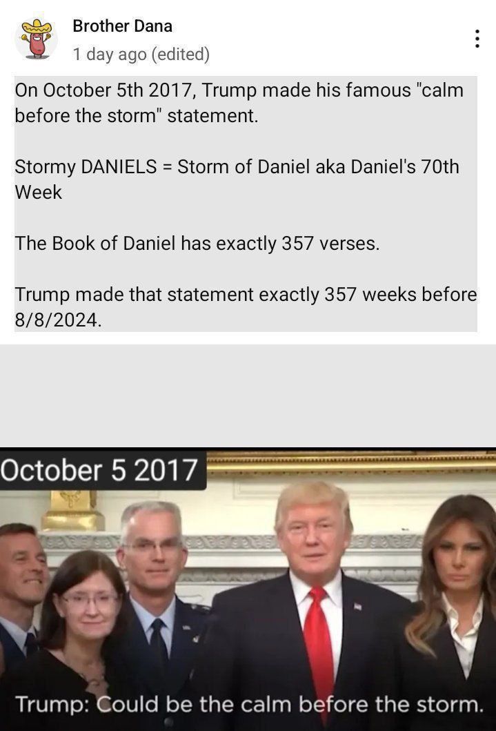 We've talked about the Daniel storm starting October 5 but the key is straight away we need to be using the right calendar.