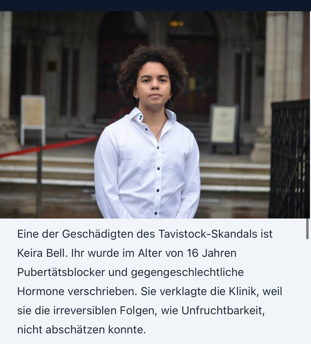 Deutschland setzt dabei auf den „affirmativen Ansatz“, der in der englischen Tavistock-Klinik hunderte Jugendliche geschädigt hat, die jetzt gegen die Klinik klagen. Sie bestehen hauptsächlich aus jungen Frauen, die die irreversiblen Schäden an ihrem Körper (Unfruchtbarkeit, Brustamputationen, Osteoporose), die sie auf Anraten der Therapeuten durchführen ließen, bereuen. 2/x