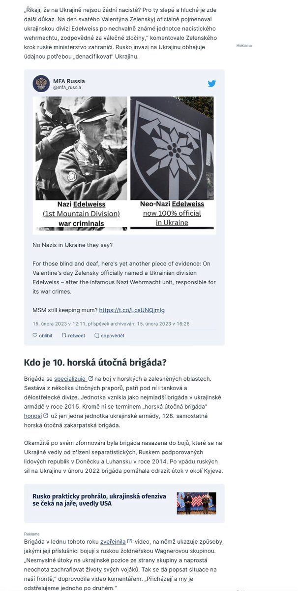 Zcela nekriticky převzali tvrzení ruského zamini, určené primárně pro Západ. Až na to, že Edelweiss má s nacismem společné asi tolik, co slovo Krieg.