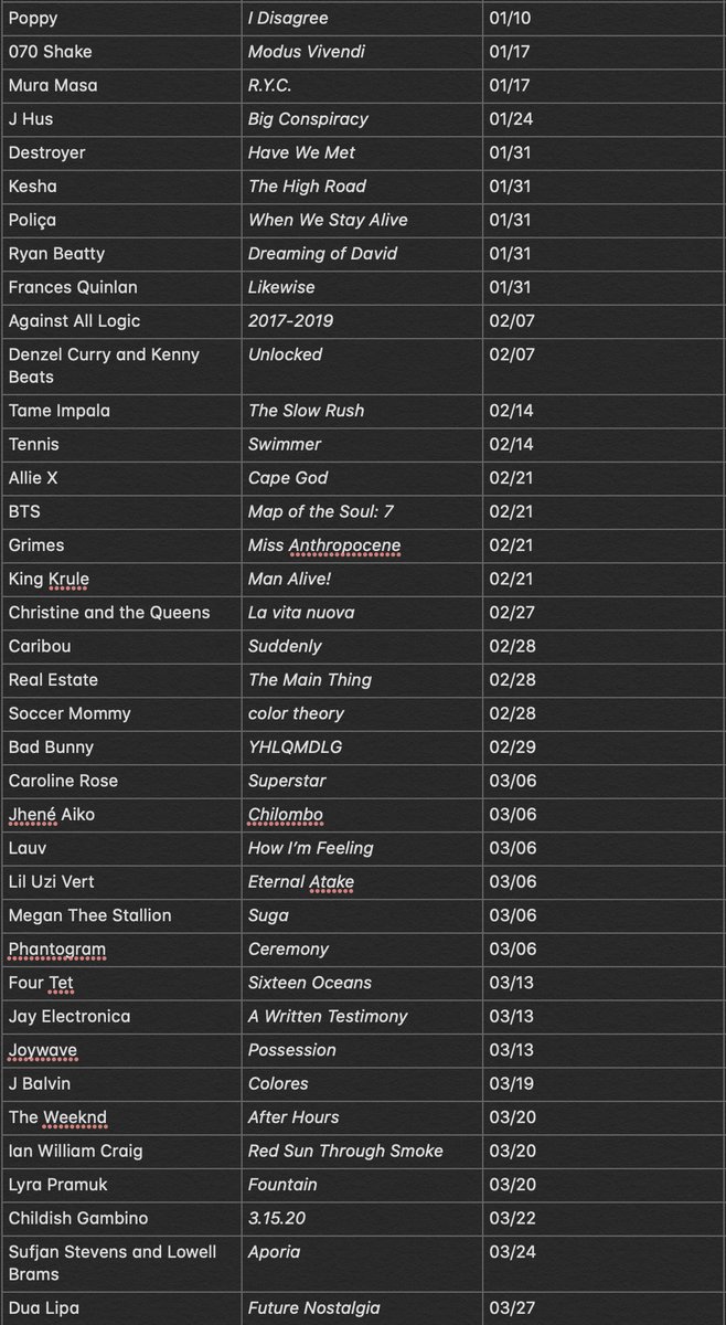 I listened to 130 albums in 2020. Here are a few that’ll forever be burned into my memory + some cute animations. In a v bitter year, these albums made life a whole lot sweeter: