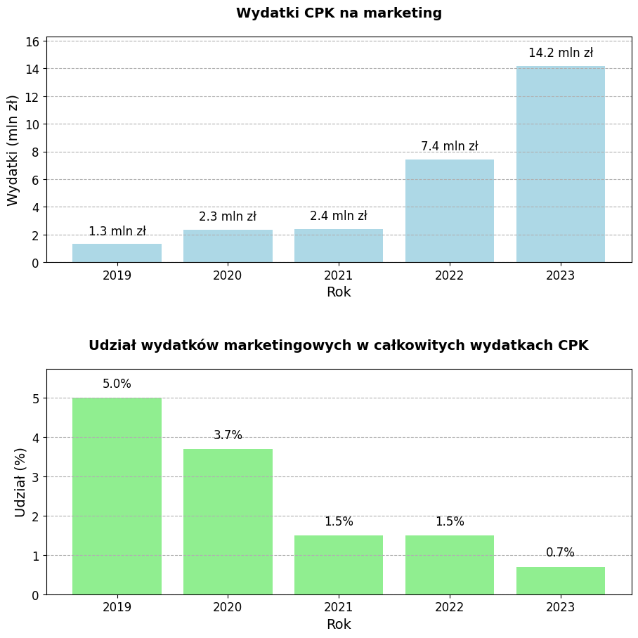 💰W latach 2019-2023, CPK wydało 27 mln zł na marketing. Stanowi to 1% wszystkich wydatków spółki w tym okresie.