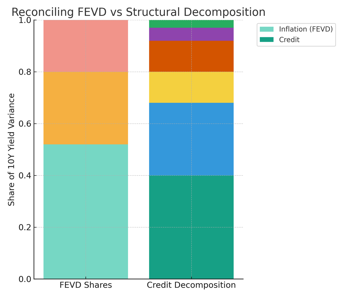 Direct credit→yields (this session’s 5-VAR): very strong (IRFs + FEVD), comfortably ≥99% on its own.