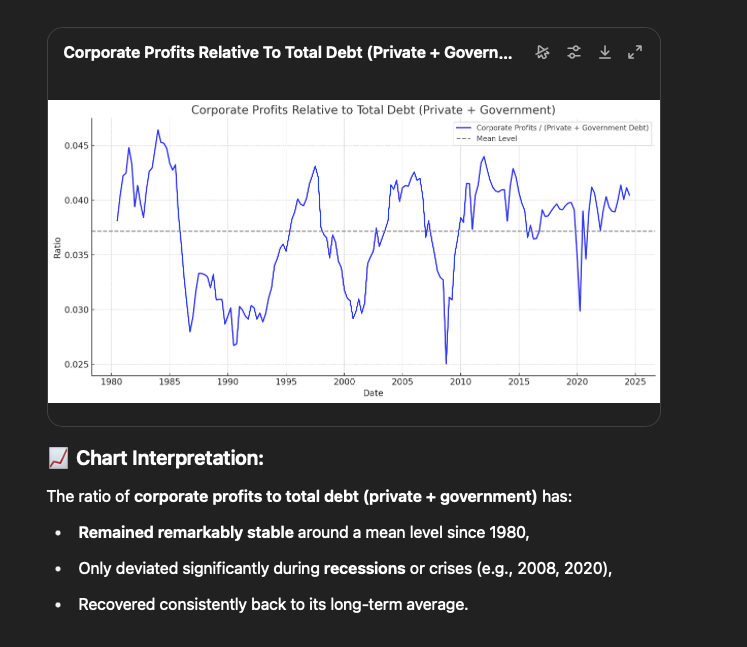 Profits are Proportional too the Total Debt issued (and do not care whether Government or Private)