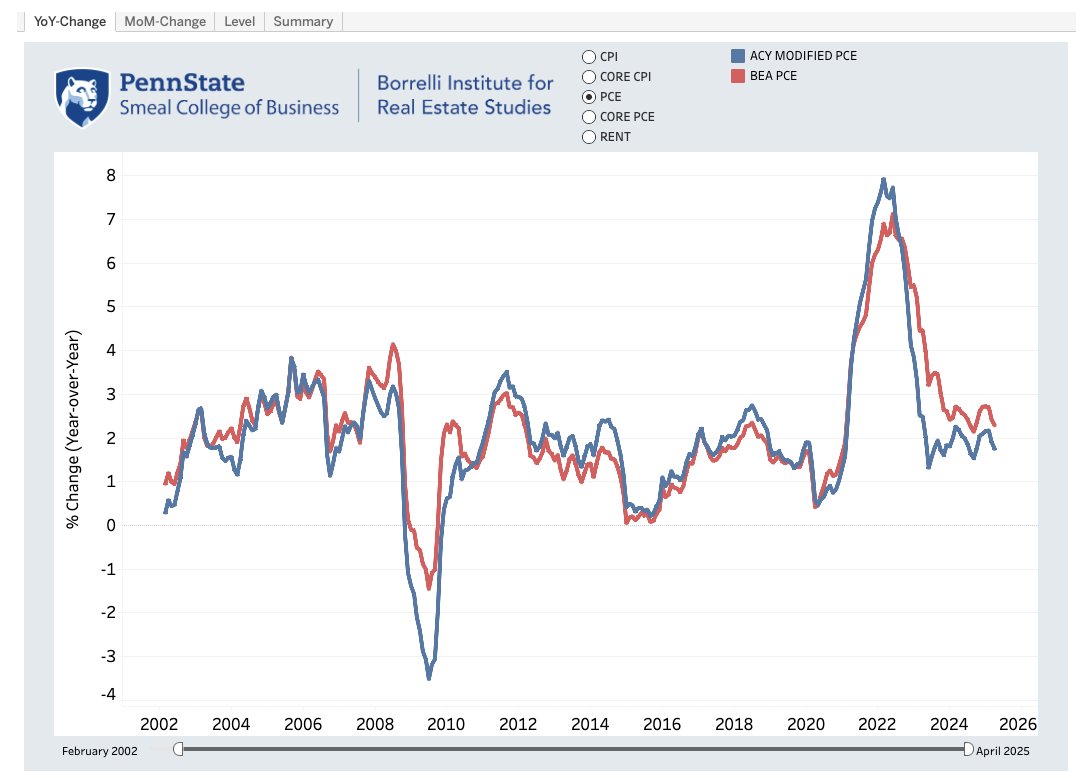 This result empirically demonstrates that the official PCE index is a mechanical transformation of real-time rent inflation, modulated by known lag weights and averaging procedures—not the result of forward-looking price setting or expectations-based dynamics.