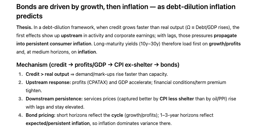 Bonds are driven by growth, then inflation — as debt-dilution inflation predicts...