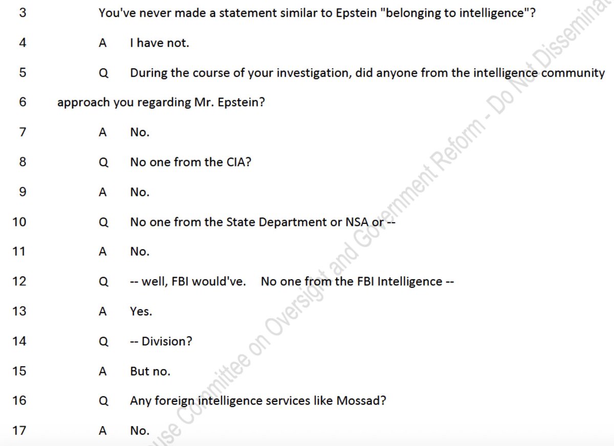 They say there are no signs in there that Jeffrey Epstein worked for intelligence. Nothing the US government wanted to be classified. No interest from intelligence agencies. Nada.