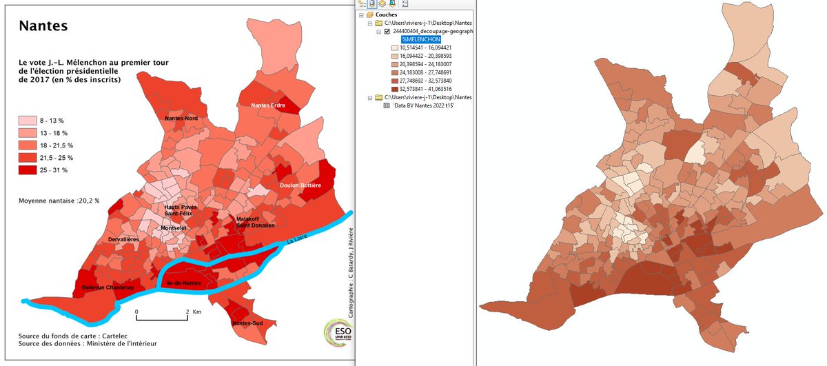 (1/n) Thread sur ce que l’on peut dire des résultats électoraux à partir du cas de #Nantes, sachant que les logiques d’organisation du paysage électoral sont semblables dans beaucoup de grandes villes. Pleins de cartes à suivre 🗺️