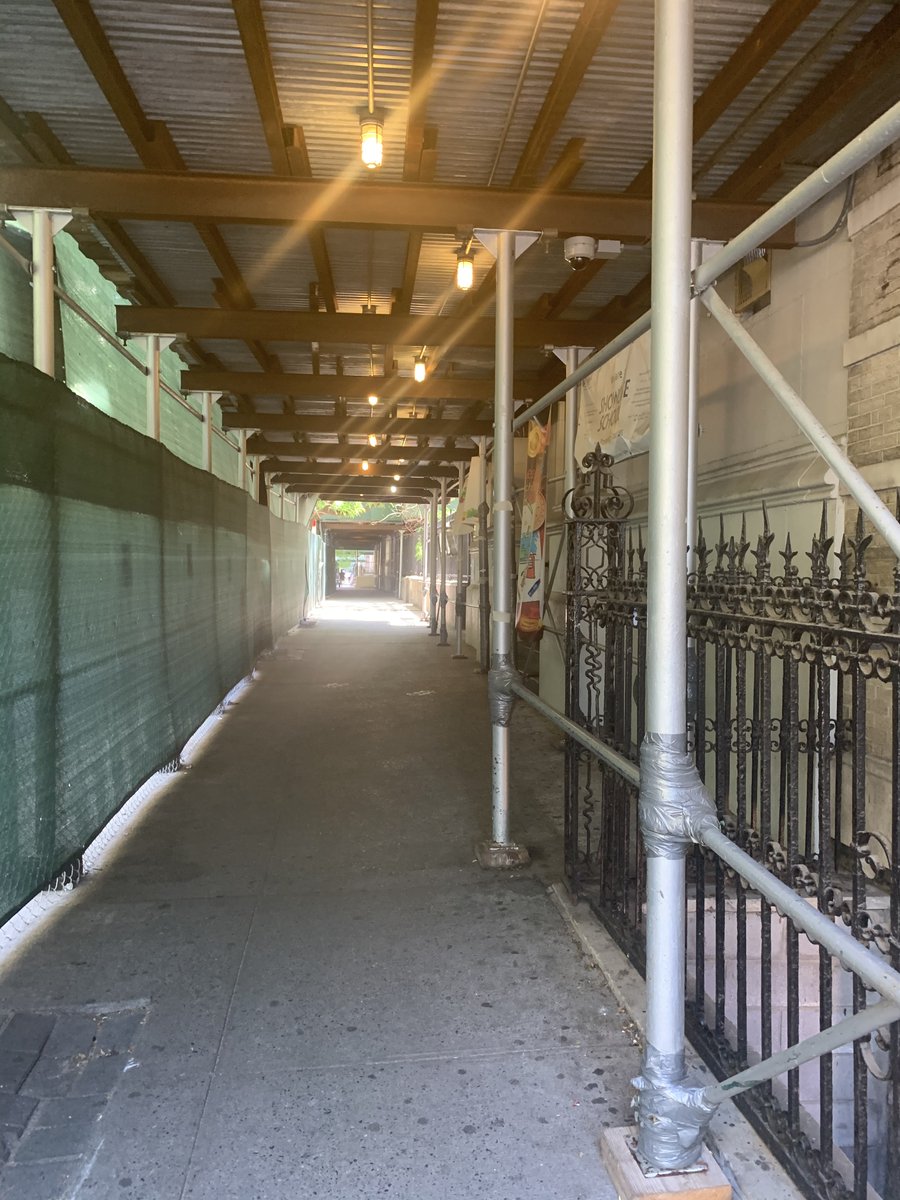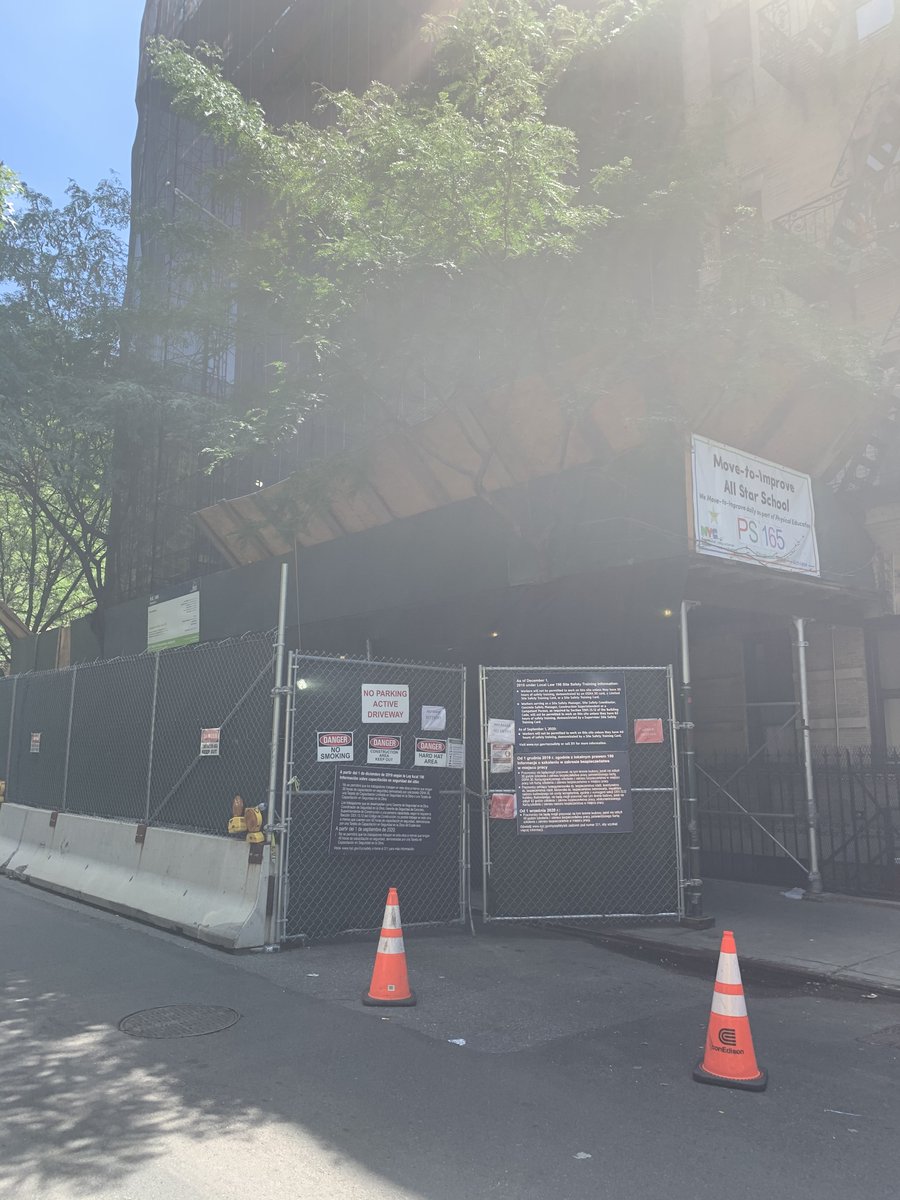 This is the corridor where kids enter and where parents of the elementary kids (starting in pre-K) drop off. I was just able to stretch my arms from side to side in it - about 6 feet. This funnel stretches for almost half a block between avenues. 2/