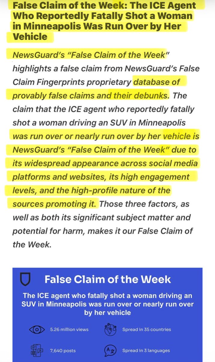 Newsguard sent this email out today declaring anyone who is stating the ICE AGENT was NEARLY RUN OVER is engaged in spreading MISINFORMATION!