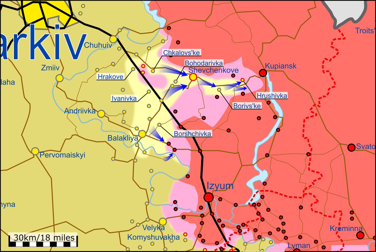 乌军从西南/西路及哈尔科夫东南方三路进军到达Shevchenkove,一部分人进入并占领定居点,其他人绕过这里并继续向Hrushivka和 Kupiansk推进,在此过程中重新夺回了Boris’ke。(见图)俄150步兵师师部旗帜也被乌军缴获。 2/10