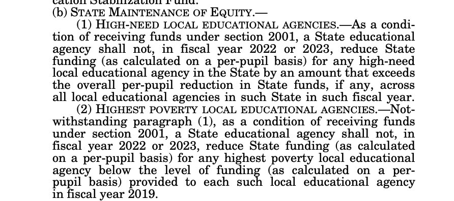 Inside the ARP, which provided critical relief to @NJGov, our schools & municipalities, are provisions about what states must do for schools when they accept that money. One of these is “maintenance of equity,” which was put in after advocacy by @EdTrust & others. Txt below. (2/
