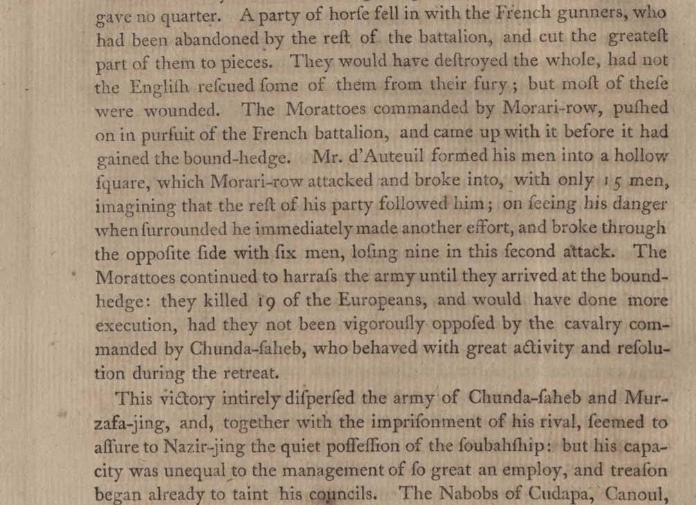Some notable instances I found in the India: 1) Murari Rao Ghorpade personally breaking through a French square with just 15 men (9 of whom died) 2) Maratha cavalry breaking a British square wiping out the entire detachment somewhere after the Siege of Trichinopoly in 1751