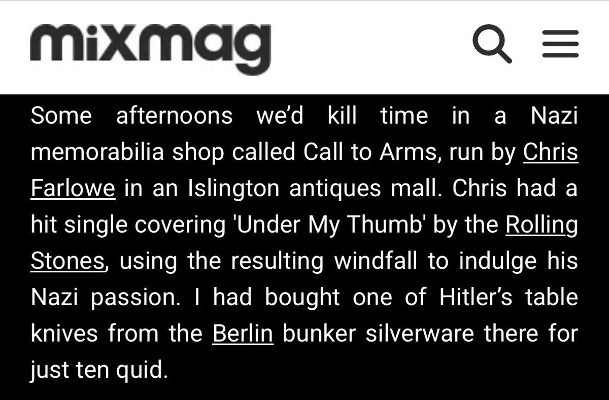 Chris Farlowe (John Henry Deighton) who had a No.1 single “Out of Time” originally by the Rolling Stones, “had 150 nazi knives in his house”