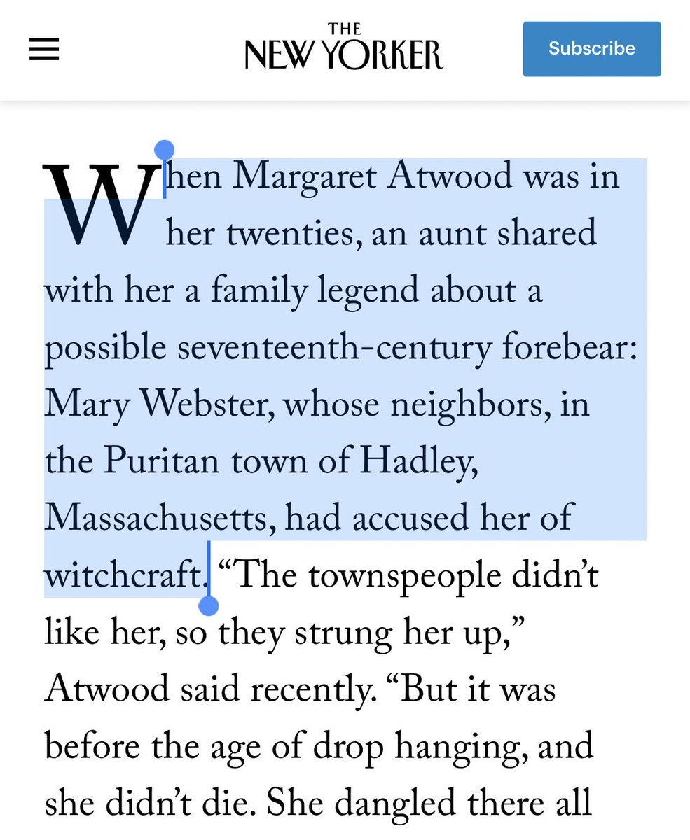 Referring to Margaret Atwood as a “dystopia witch” is justified btw, The New Yorker agree, and Margaret herself seems to think she has “witch genes” 😉