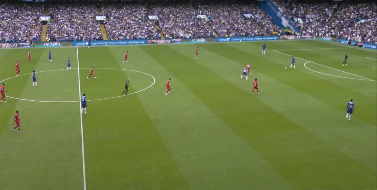 Starting with the City game, Chelsea are 1-0 up yet are putting no pressure on the ball whilst the defensive line remains high