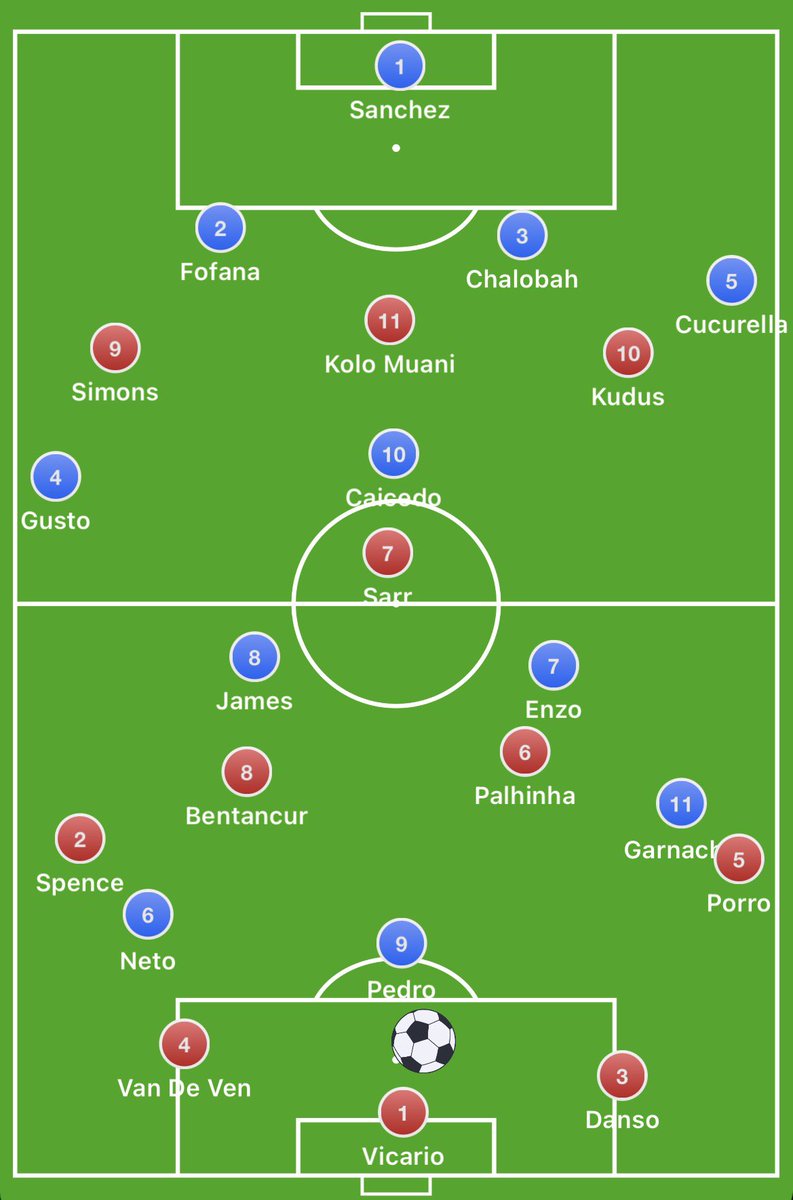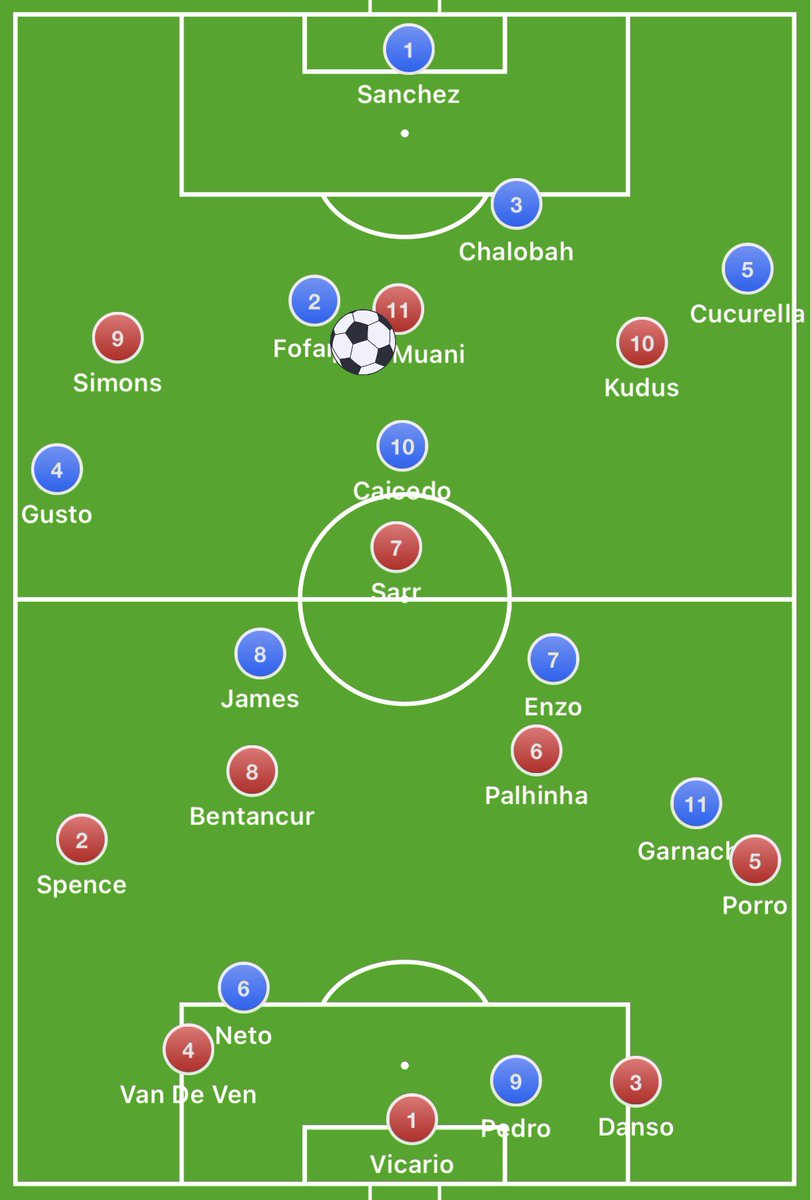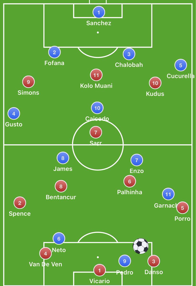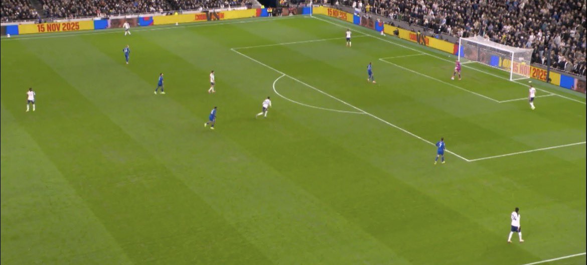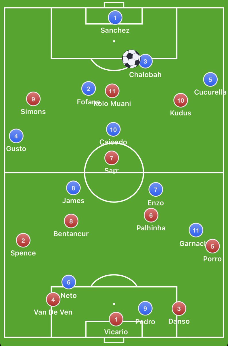 Chelsea tried to lock Spurs down one side of the pitch, Pedro would try to force Vicario down the right, Neto then fully commits to Danso, it leaves Spence free but he’s on the other side of the pitch