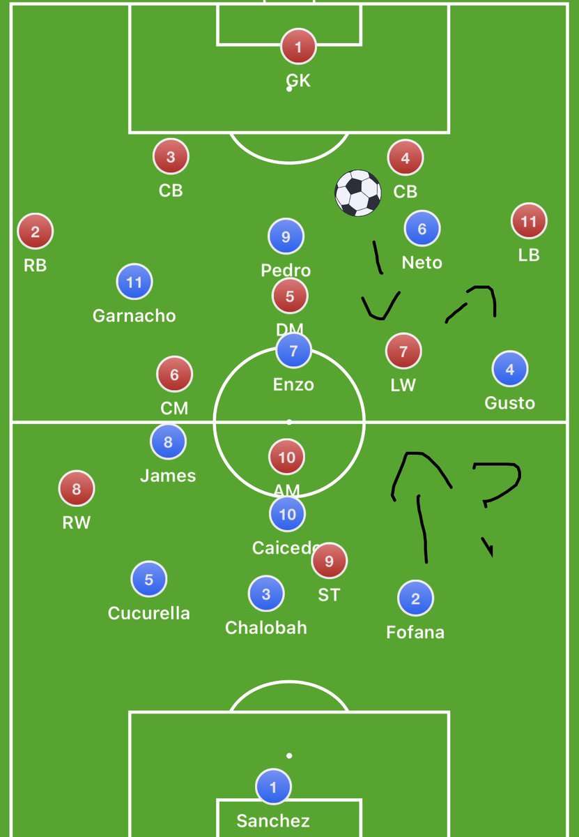 Liverpool were dominant for the first 20 minutes but then Chelsea took control after that, why was this? Chelsea started the game in a 3-1 build up with Gallagher as the deepest midfielder, Liverpool’s front 3 was narrow onto our centre backs with Jota covering Gallagher