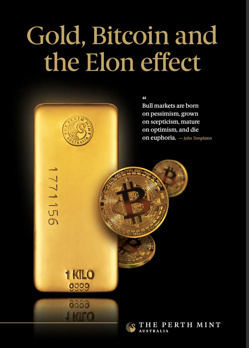 1/n So its been 2 weeks since I sold my #Bitcoin. Today I've seen an article titled "RIP gold. Killed by Bitcoin", and watched a video on @business where the CEO of a crypto exchange says #Bitcoin is going "To infinity" and will replace "all the world's currencies". Perfect time 2/n To release latest report; "Gold, Bitcoin and the Elon effect" perthmint.com/documents/PM-M… Runs through a variety of metrics by which investors can measure these two vastly different asset classes. Liquidity, Market Cap, Governance, Portfolio Role, Use Cases, Network effects