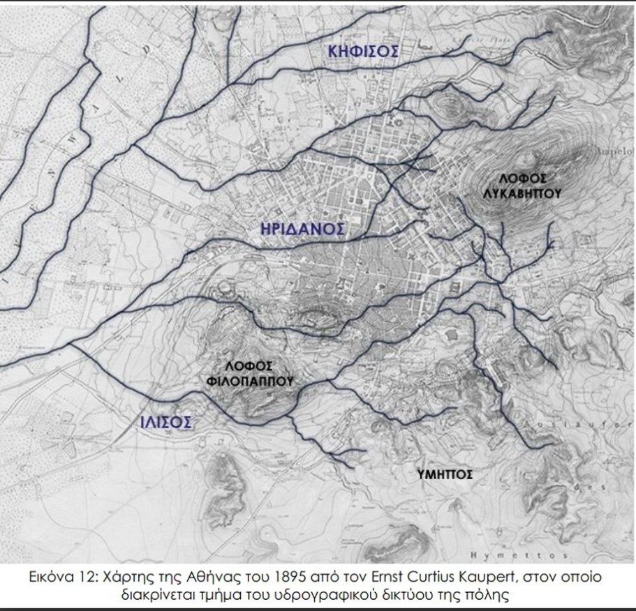 2) ενώ η Αθήνα διέθετε ορμητικούς χειμάρρους που πότιζαν χωράφια, πριν μετατραπούν σε «θαμμένα» υπόγεια ποτάμια λόγω της ανοικοδόμησης.