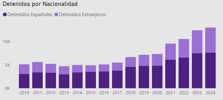 Cuando miramos los datos de detenidos desde el año 2017, tenemos un incremento en todos los tipos de delito 👇