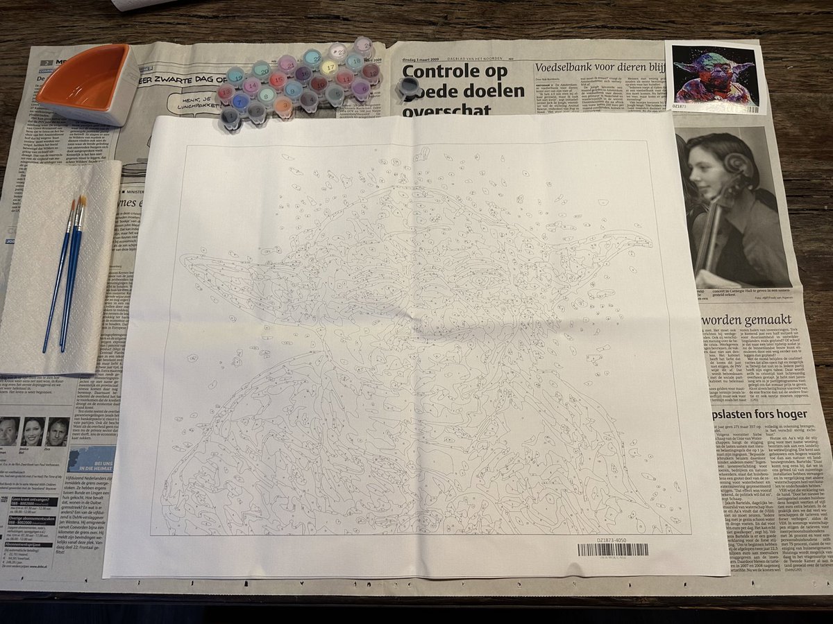 Dit fantastische kunstwerk. En Josan zou Josan niet zijn als er al niet ergens in huis een half afgemaakte Darth Vader zou rondslingeren die ze nergens terug kan vinden. Kijken of deze wel afkomt 😂