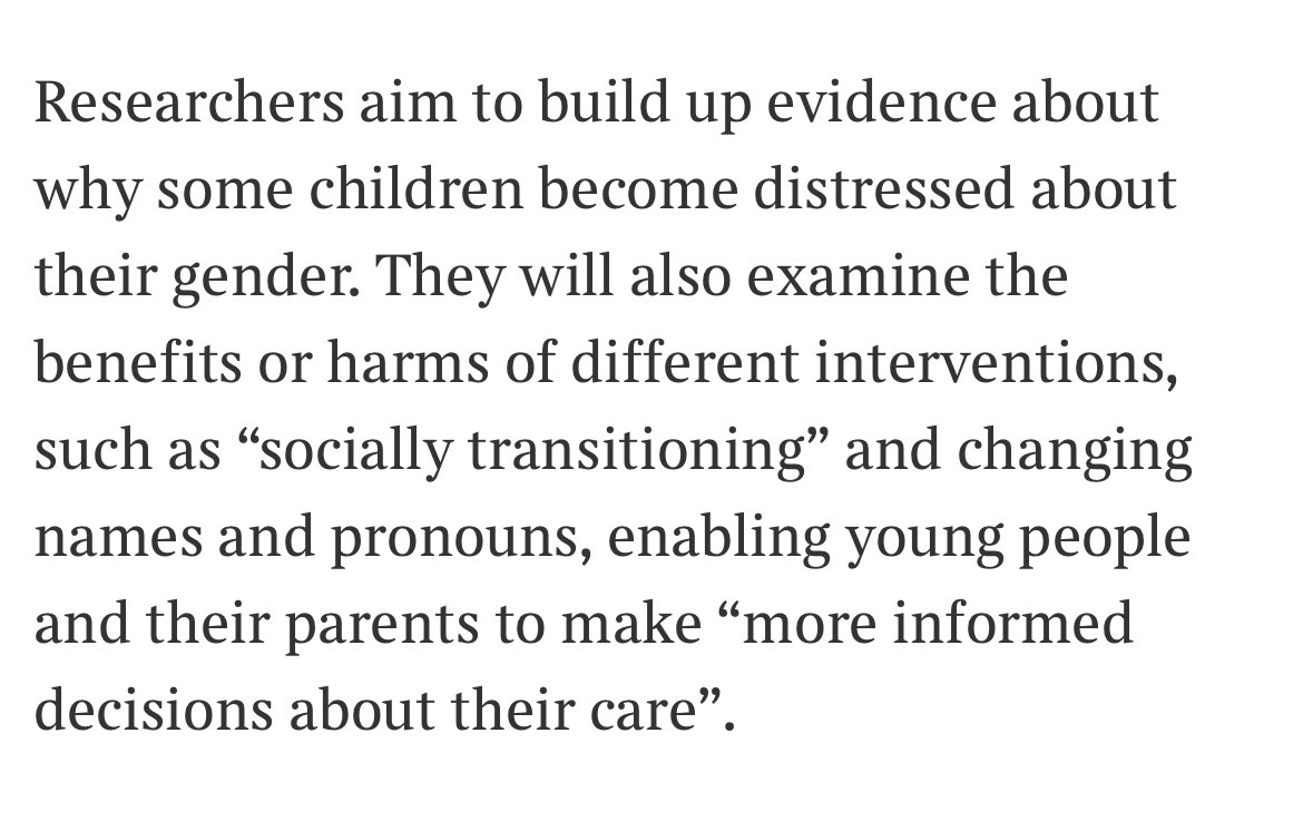 ‘All under-18s referred to specialist NHS gender clinics will be invited to join the trial, Pathways Horizon, which has no lower age limit and *will run alongside a study of puberty blockers’*