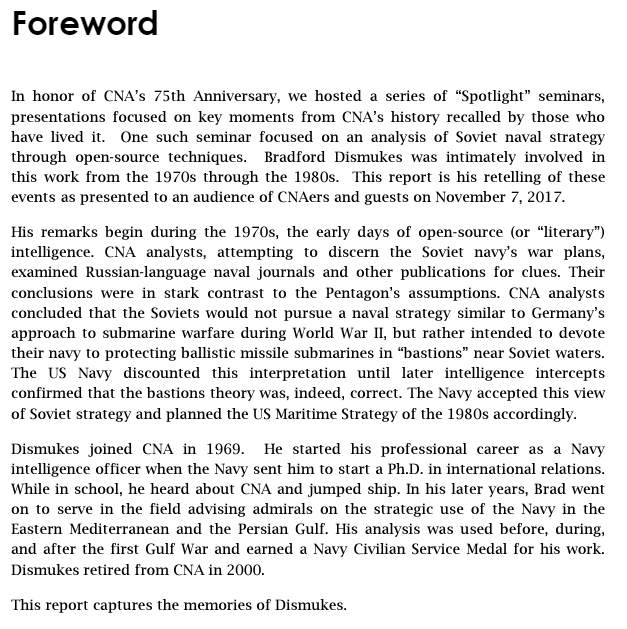 The knowledge was passed down as an annotated slide deck, which was publicly released in 2018 as "Hidden in Plain Sight: CNA and the Soviet Navy." It's a presentation given by Brad Dismukes reflecting on his experience on the issue. You can find it here: