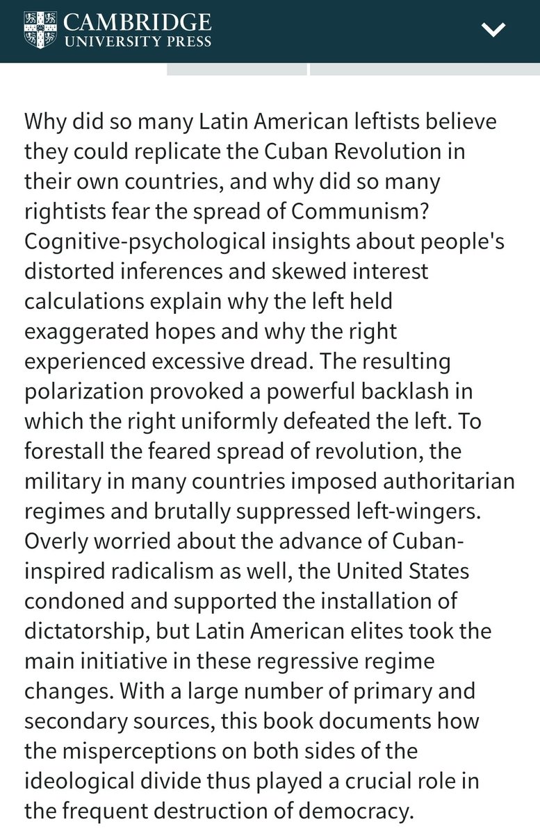 Ofc that's not the argument as-written. The thesis is this: the Cuban Rev led to hopes/ fears of leftist overthrow for leftists and non-leftists, respectively. This will lead to political spirals where anti-communist authoritarian regimes will take power (w/ popular backing).