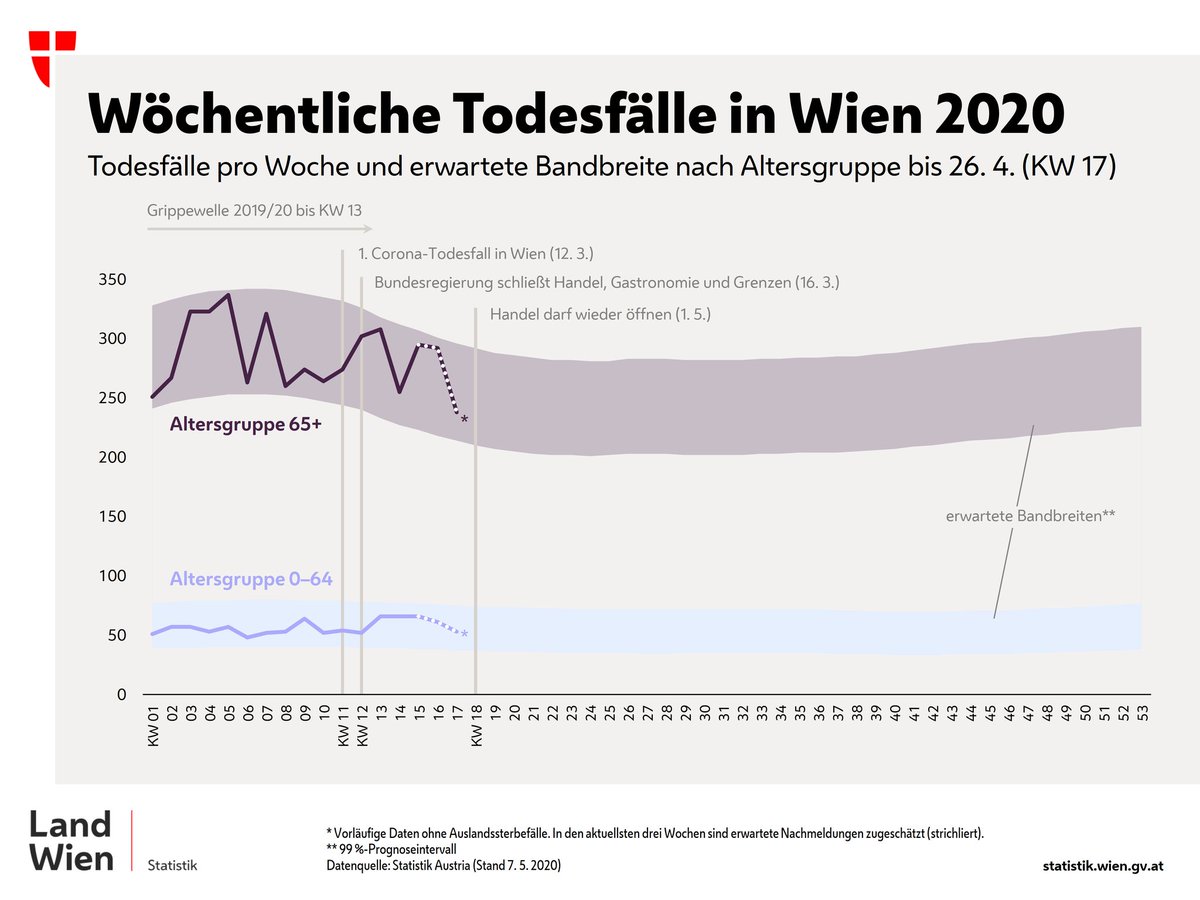 Daher haben wir für #Wien ein Mortalitätsmonitoring eingerichtet. Good news: bis 26.4. waren die Todeszahlen unauffällig! (Thread)