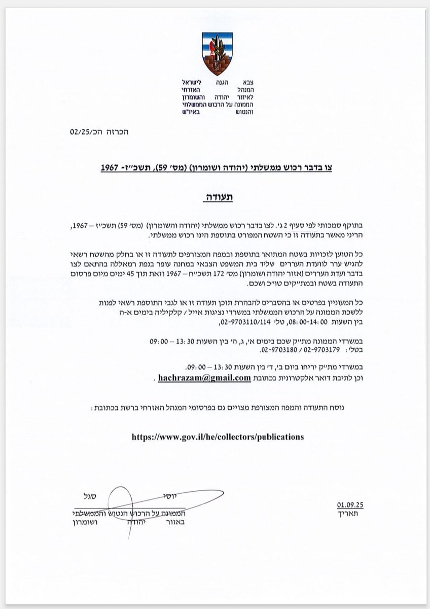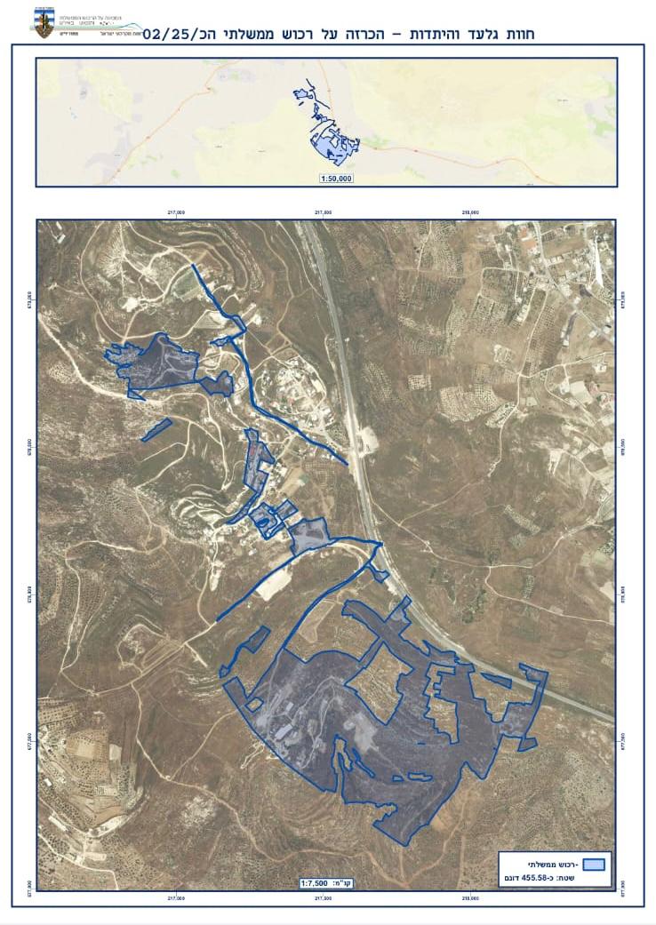 השבוע הכריזה ישראל על מאות דונם מאדמות שלושה כפרים ממערב לשכם כ"אדמות מדינה". המטרה: להכשיר את המאחזים האלימים חוות גלעד וחוות יתדות ולהרחיבם. עוד פרק בשיטה הוותיקה של "גזל חוקי" לטובת מפעל ההתנחלויות בגדה המערבית. שרשור. 1/ ביום שני השבוע (1.9.2025) פרסם מר יוסי סגל הנושא בתואר הלא נכבד "הממונה על הרכוש הנטוש והממשלתי ביהודה ושומרון", תעודת שבה הוא מכריז על שטח בן כ-456 דונם מאדמות הכפרים הפלסטינים" תל, פרעתא וג'ית כ"אדמות מדינה". >>